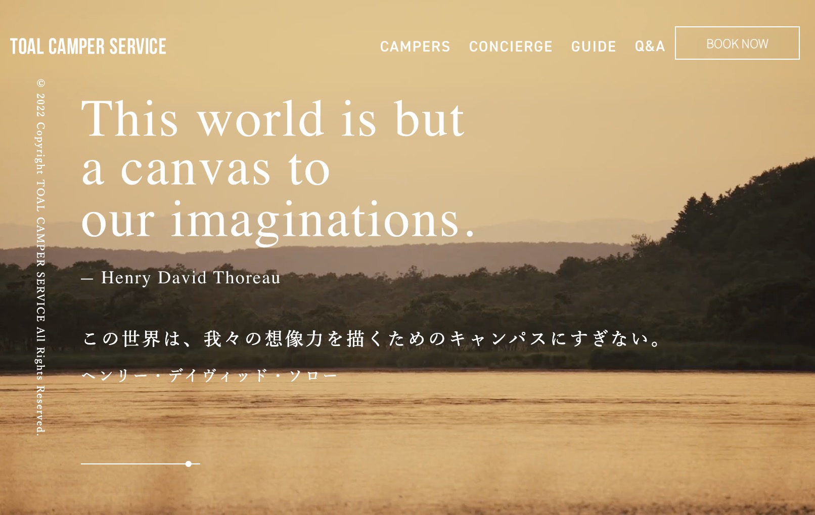 TOAL CAMPER SERVICE – 北海道の広野を移動しながら旅をする。キャンパーのレンタルを中心としたアウトドアのコンシェルジュサービス。 「-Trip Of A Lifetime- 一生に一度の旅」をサポートいたします。 TOAL CAMPER SERVICE
